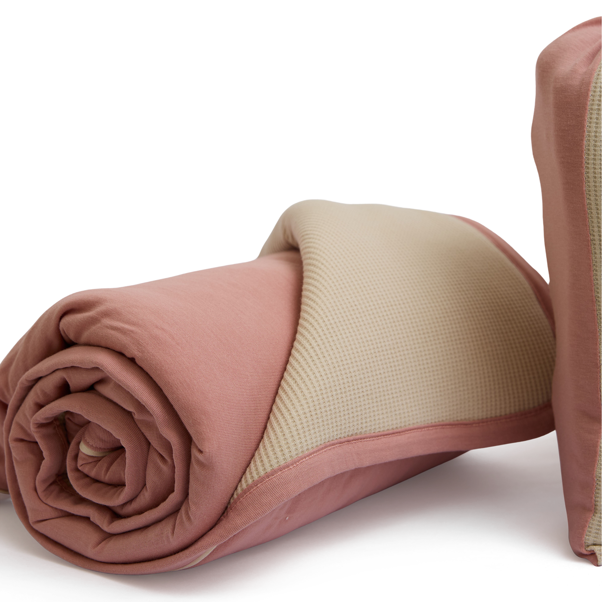 שמיכת ג’רזי דו-צדדית עשויה 100% כותנה אורגנית. צד אחד וופל סרוג וצד שני כותנת ג’רזי אורגנית בתוספת מילוי קל ונעים למגע רך ומפנק. מתאימה למיטת תינוק.