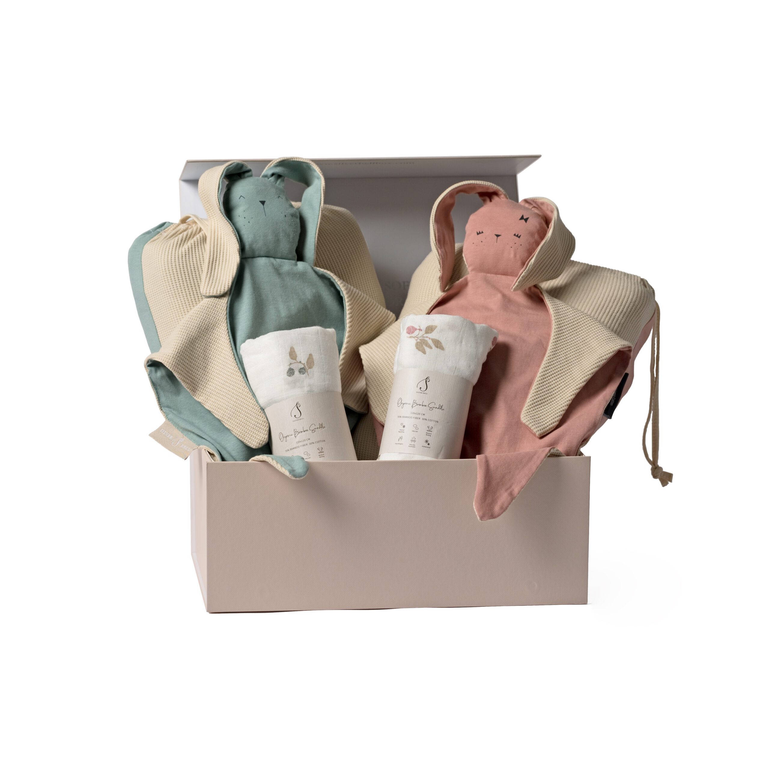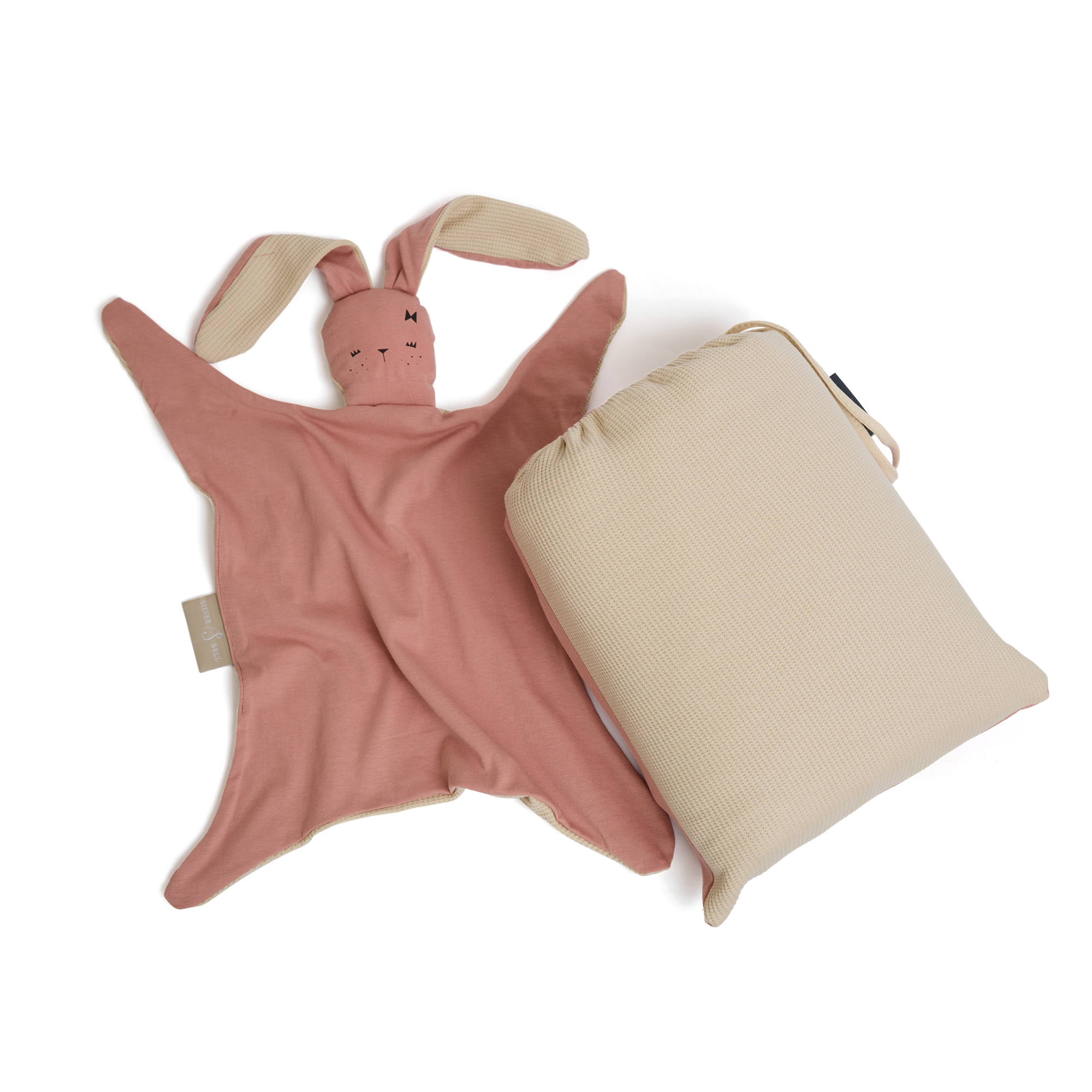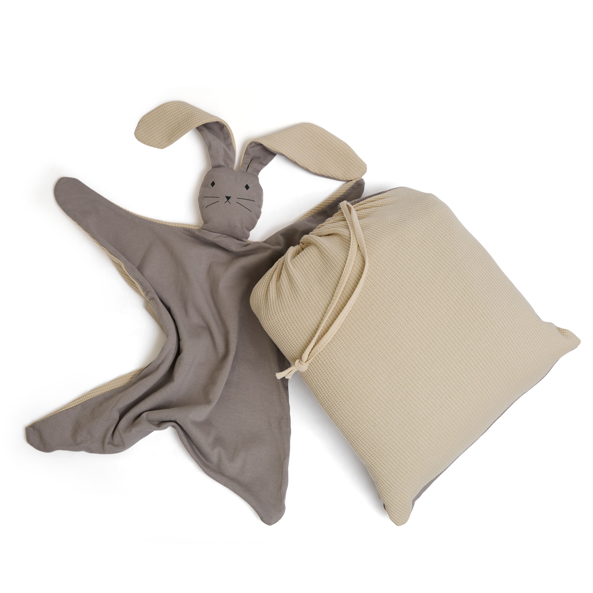נבי (שמיכי) – בובת חיבוקי בצורת ארנב עשויה 100% כותנה אורגנית. צד אחד וופל סרוג וצד שני כותנת ג’רזי אורגנית המשמשת כחפץ מעבר נעים ומפנק.